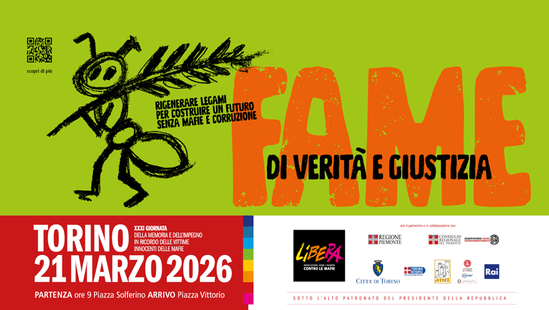 Il 21 marzo 2026 Torino ospiterà la Giornata nazionale in ricordo delle vittime innocenti delle mafie.